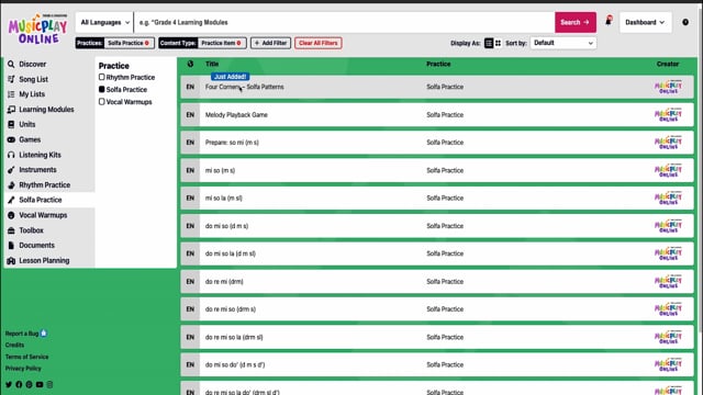 The Solfa Practice section features echoing, hand signs demonstration, flashcards, and animated elements like Talking Pets to aid in teaching solfege. We help to introduce various versions in different keys for fixed and movable “do” systems. The section includes activities such as poison melody, reading hand signs, reading notation, listening and singing, as well as rhythm dictation, and numerous patterns for comprehensive learning.