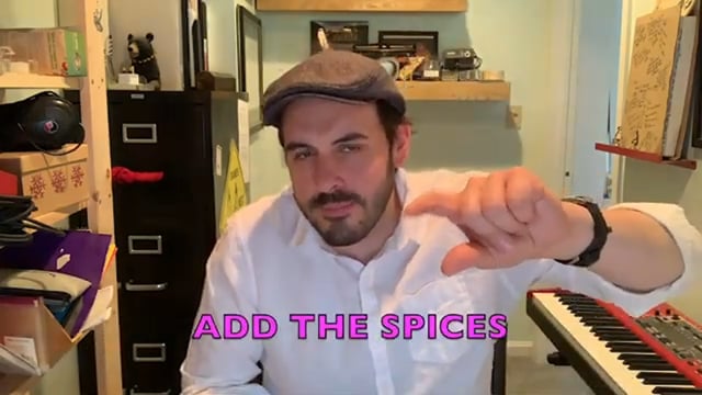 Then, go back to the video of the song and play your composition as the B and C sections of the song.