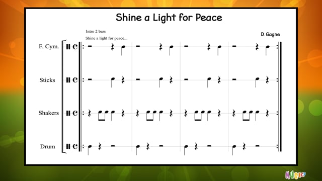 - Play the rhythm band arrangement with “Shine a Light for Peace”