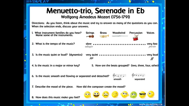Share this URL with your students to give them limited access to MusicplayOnline.Watch the Listening Log Video of "Menuetto-Trio" and Answer Questions