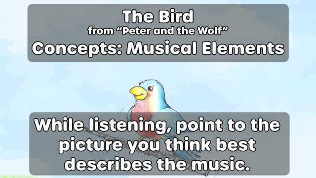 "The Bird" is played by the flute. The music is high, and it is fast.