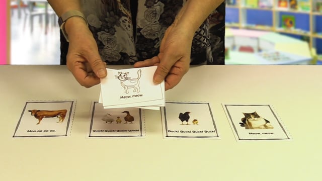 As you listen to the song, point to the animal card that shows the animal you are singing about.