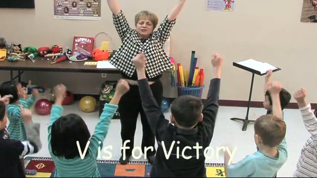Share this URL with your students to give them limited access to MusicplayOnline.Sing “V is for Victory!” and copy the movements