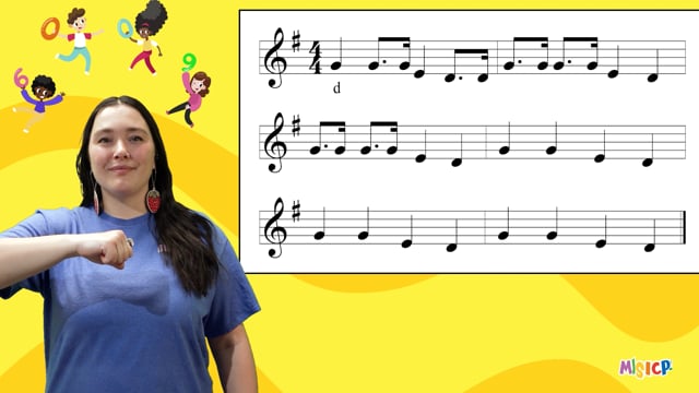 While teaching this song you will cover multiple concepts including: Beat, Melodic Direction (high-middle-low), The Staff