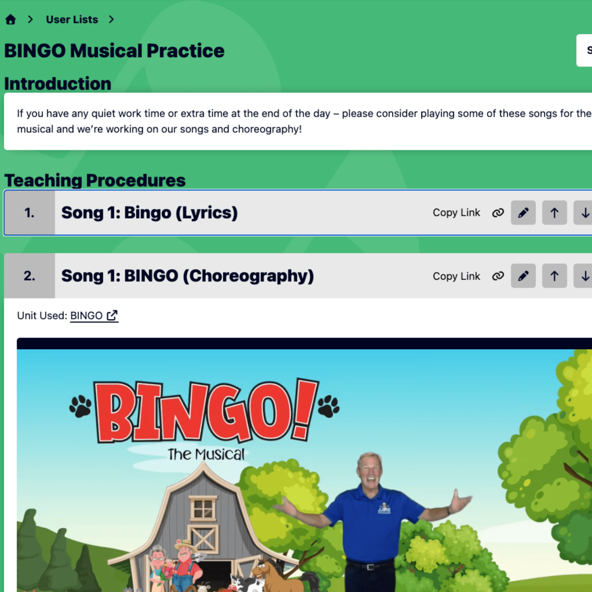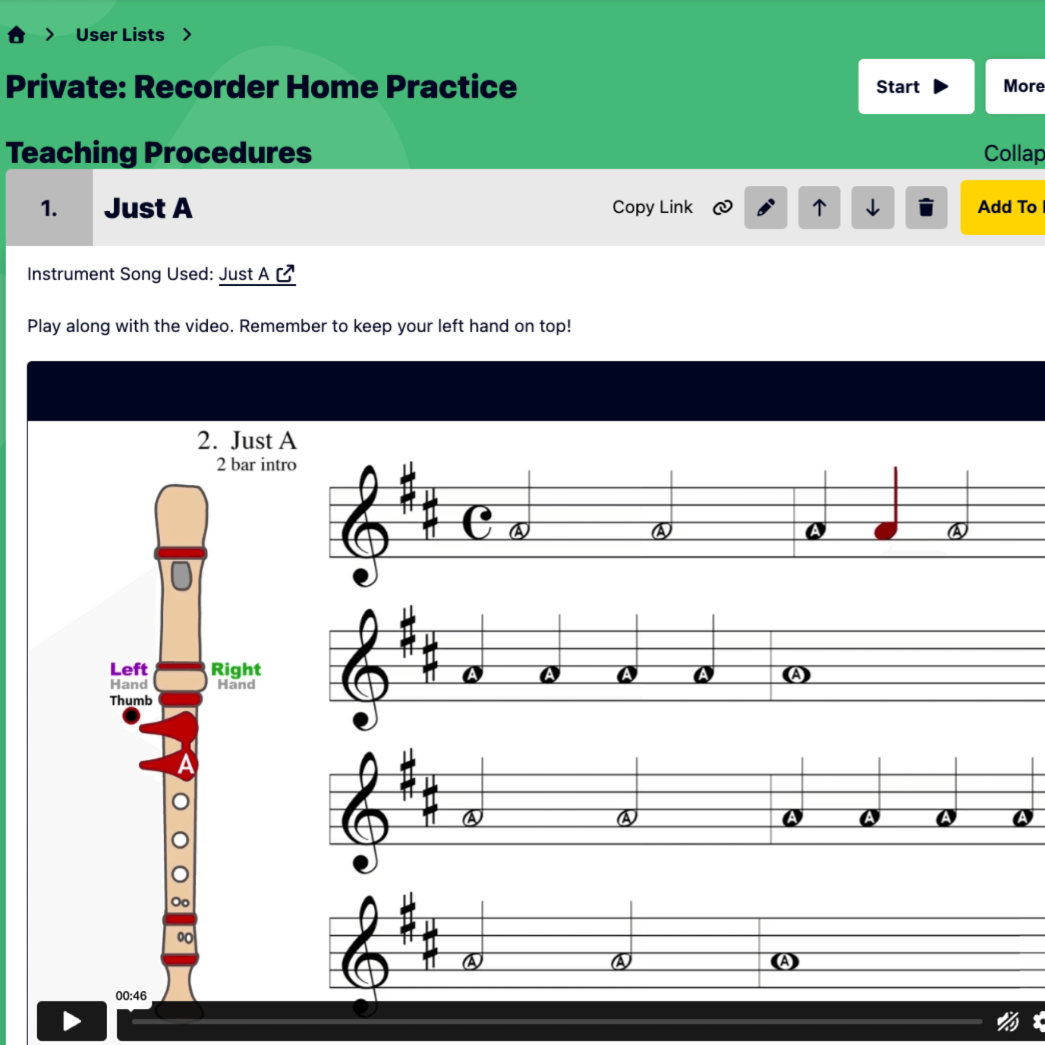 Create a list from scratch or clone and edit an existing lesson. Add procedures from around MusicplayOnline or add external links.