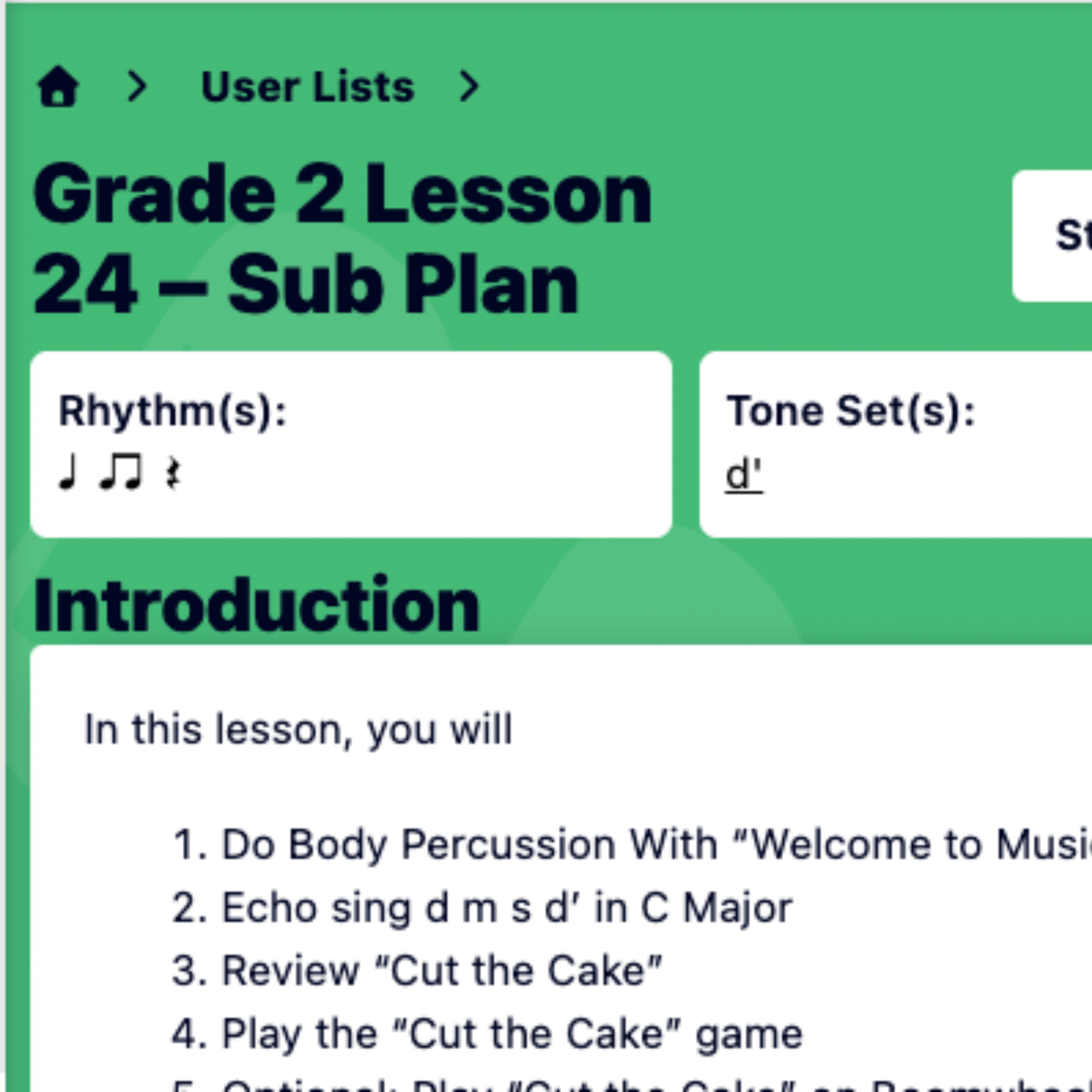 As a non music specialist it was a fantastic resource that I learned a lot from. The kids were always engaged and Denise's role in the videos was great. The songs were fun and the kids have favorite slides and songs from learning this year. It ties literacy into it as well and I love that it is broken down monthlty by the weeks and that we have the choice of revisiting other lessons and modules. The children love this site and I actually had a little boy in grade one wanting to know if he could access it from home. Love this resource and would benefit from it next year.